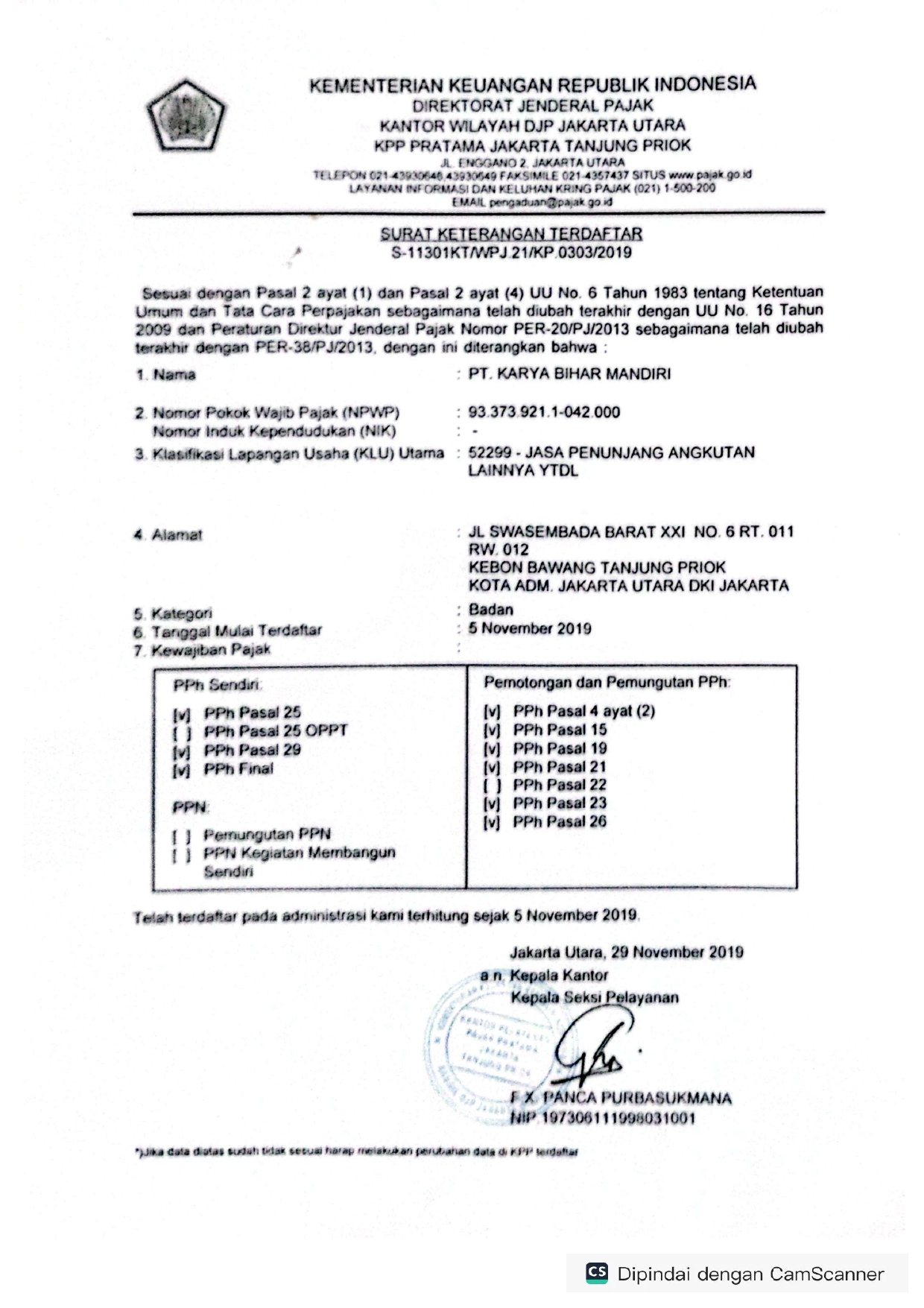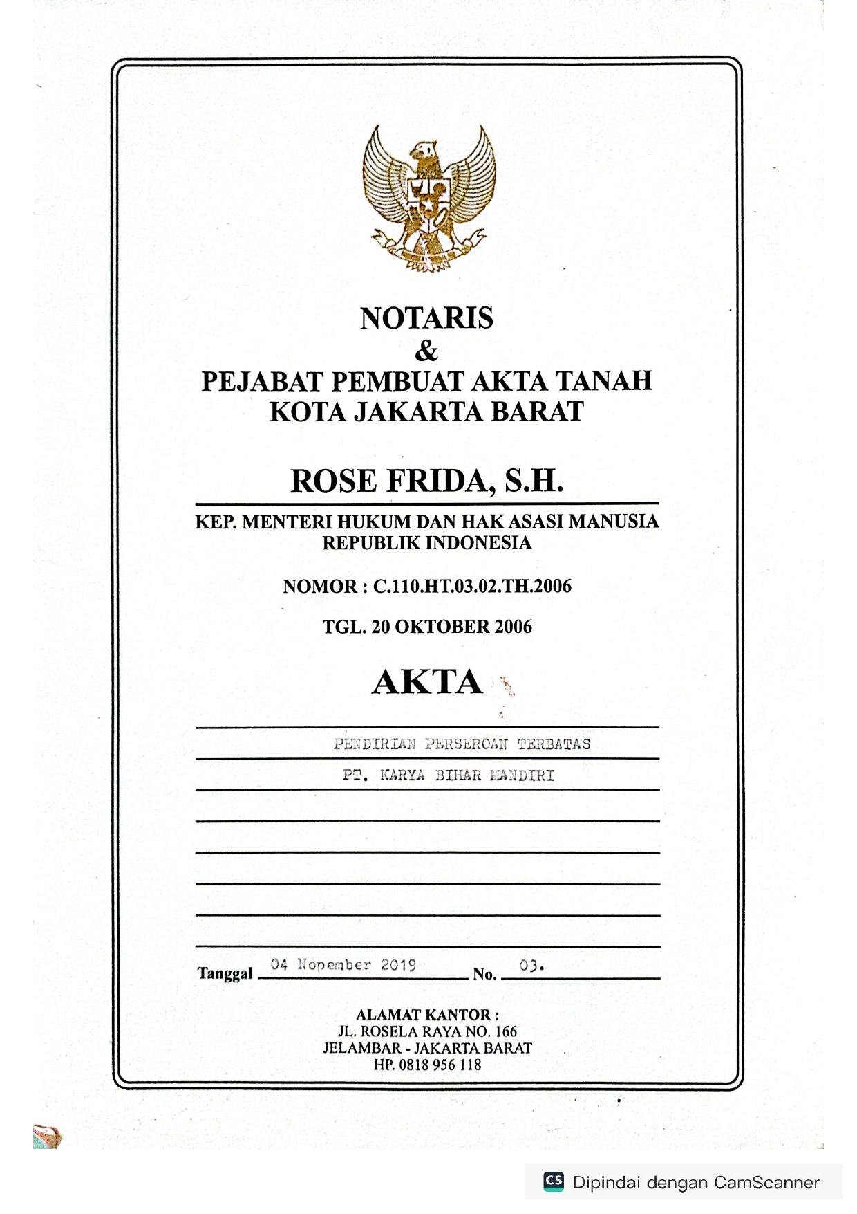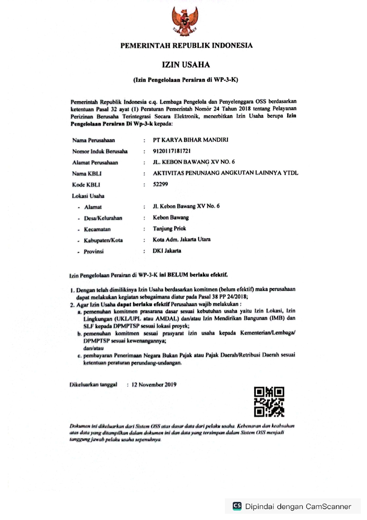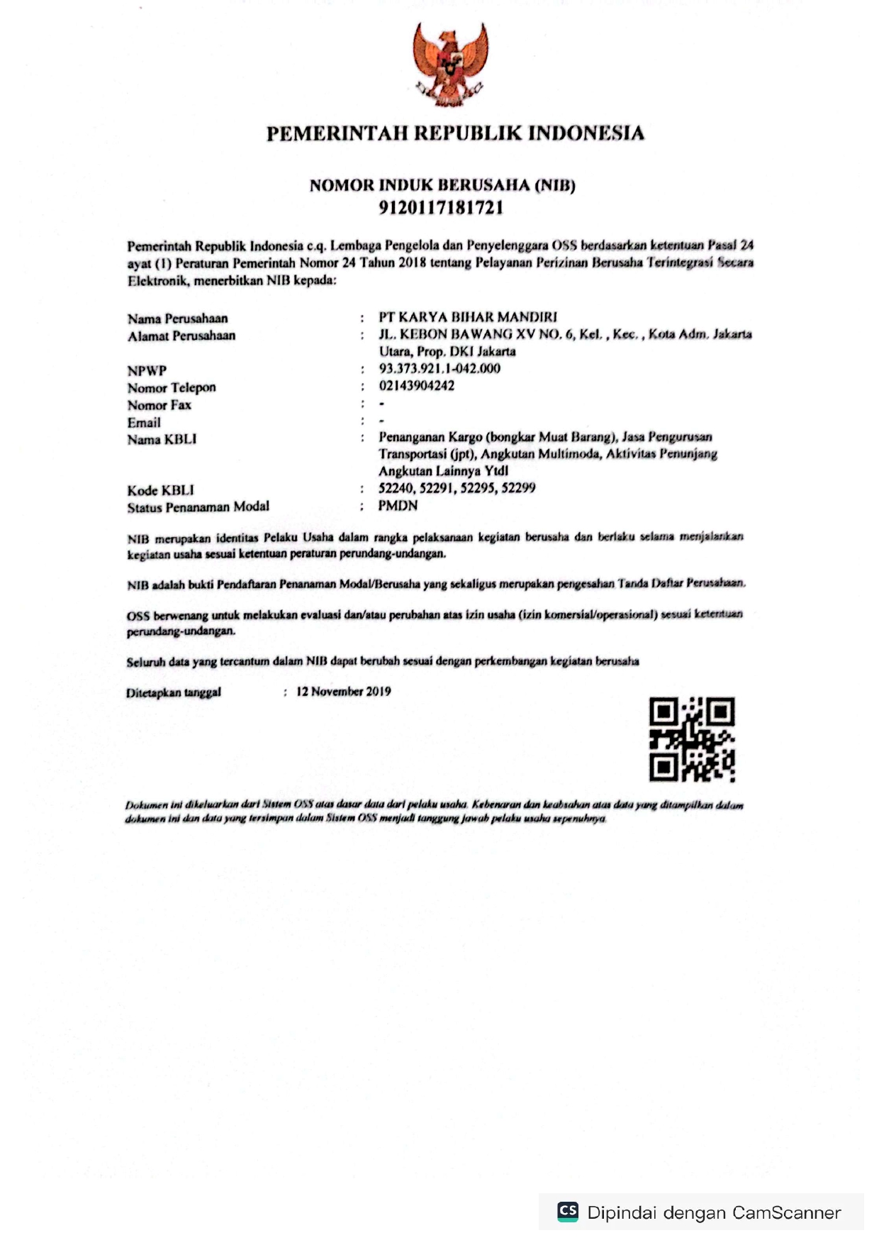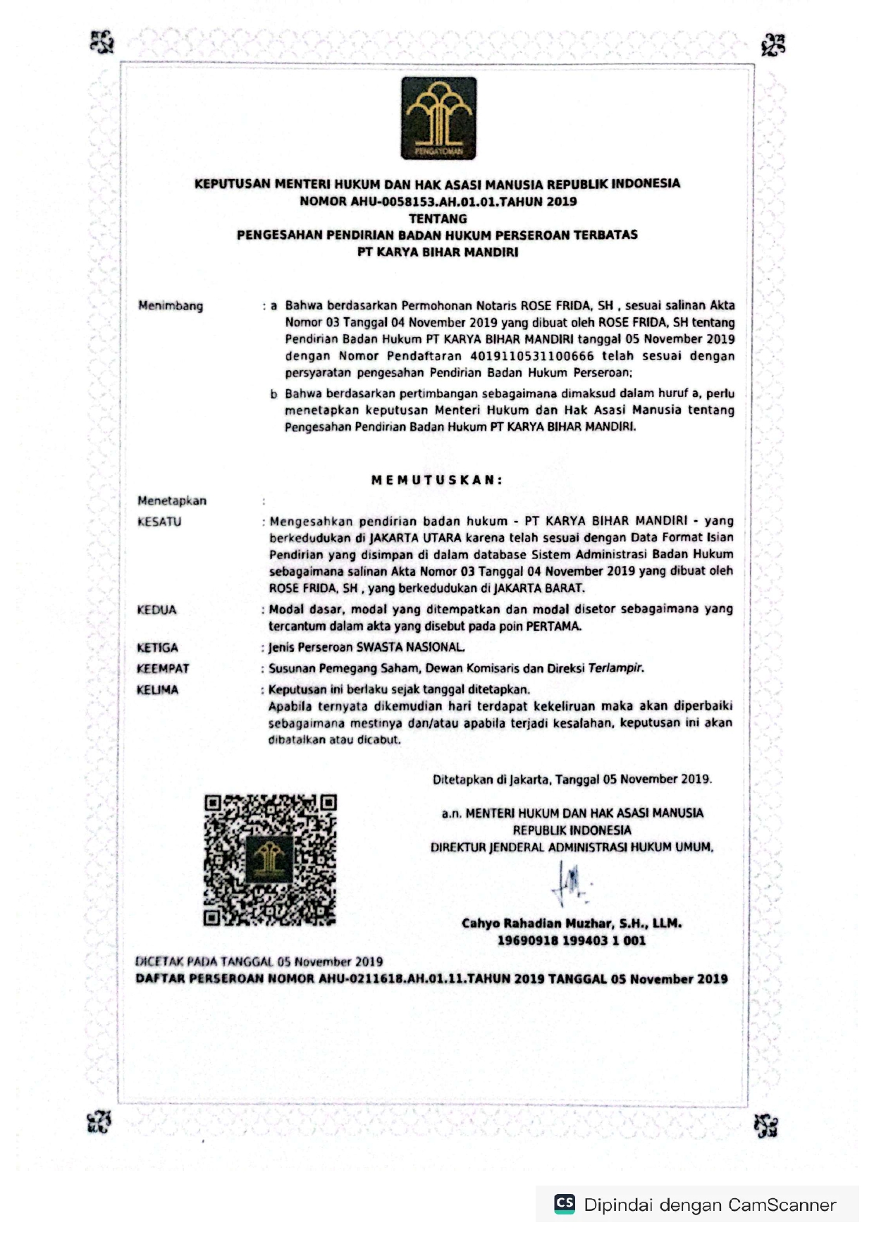 Perusahaan kami memiliki legalitas resmi yang diakui oleh instansi terkait. Hal ini merupakan wujud kepercayaan dan transparansi dalam memberikan layanan terbaik bagi seluruh mitra dan pelanggan.